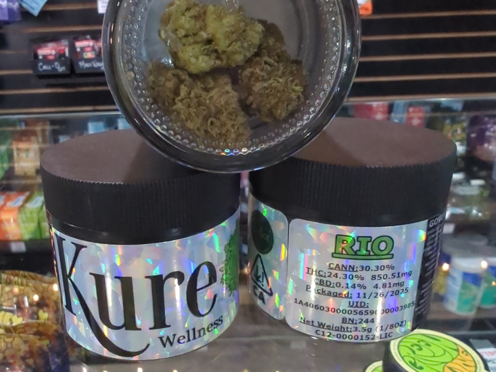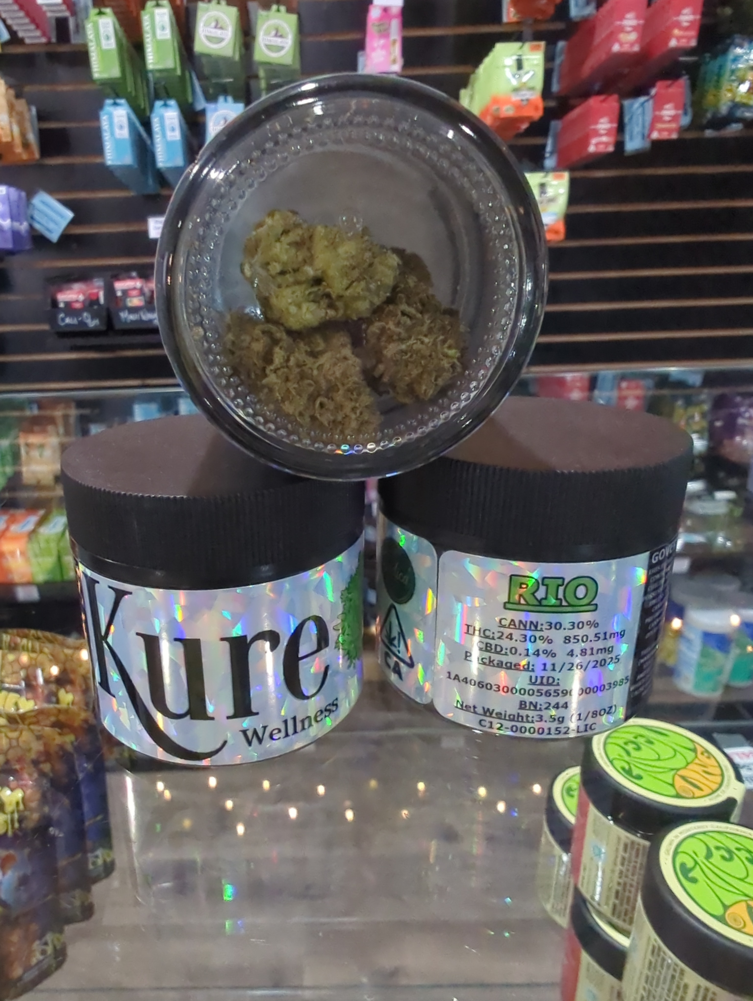 Kure RIO 3.5g Flower $14.95 Product Strain RIO Product Type Flower Quantity on Hand 31 Product brand Kure Package UID 1a4060300005659000003985 Last Inventory Count Date Mon, 02/16/2026 - 06:23 PM Expiration Date 11/26/2026 NOTE: WE ONLY ACCEPT CASH